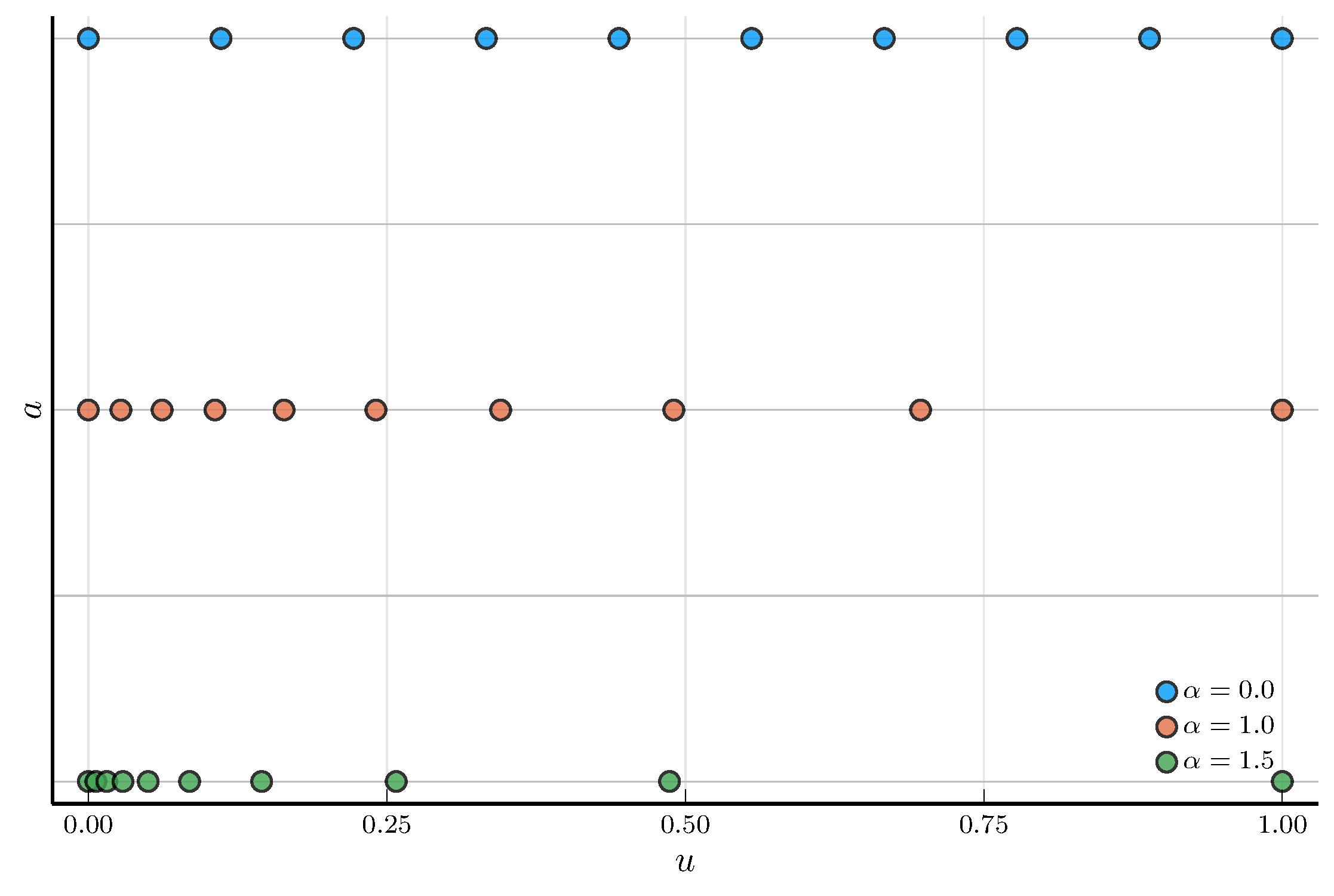 agrid::Vector{Float64} = make_grid(0.0, 1.0, N; α = α)
