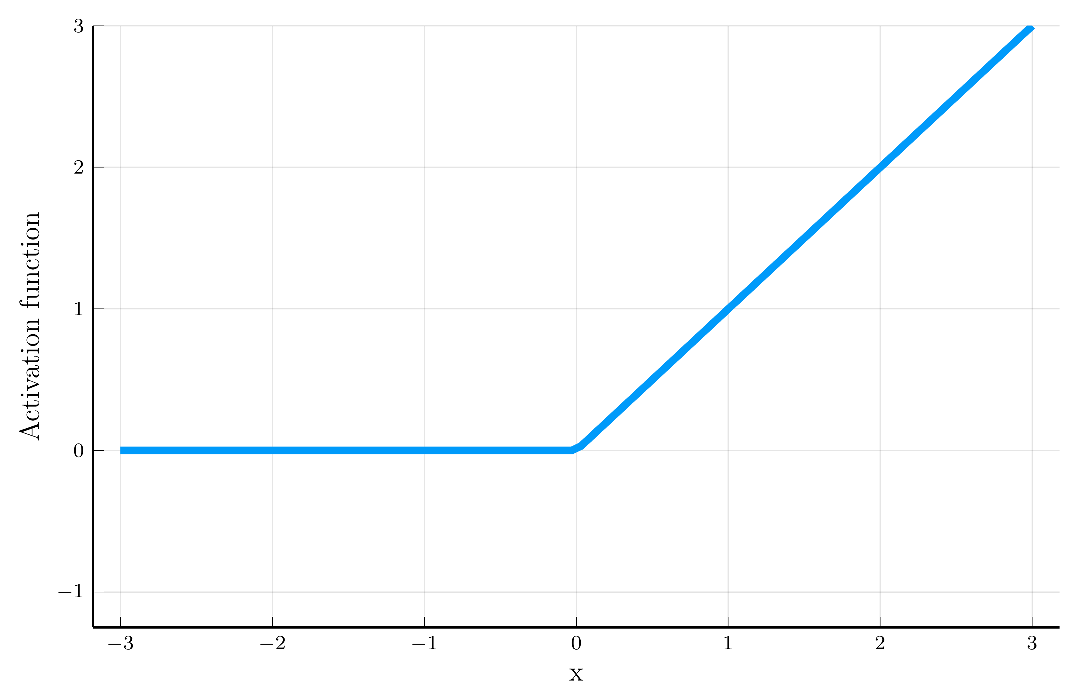 The rectified linear unit (ReLU): \[ \sigma(x) = \max(0, x). \]