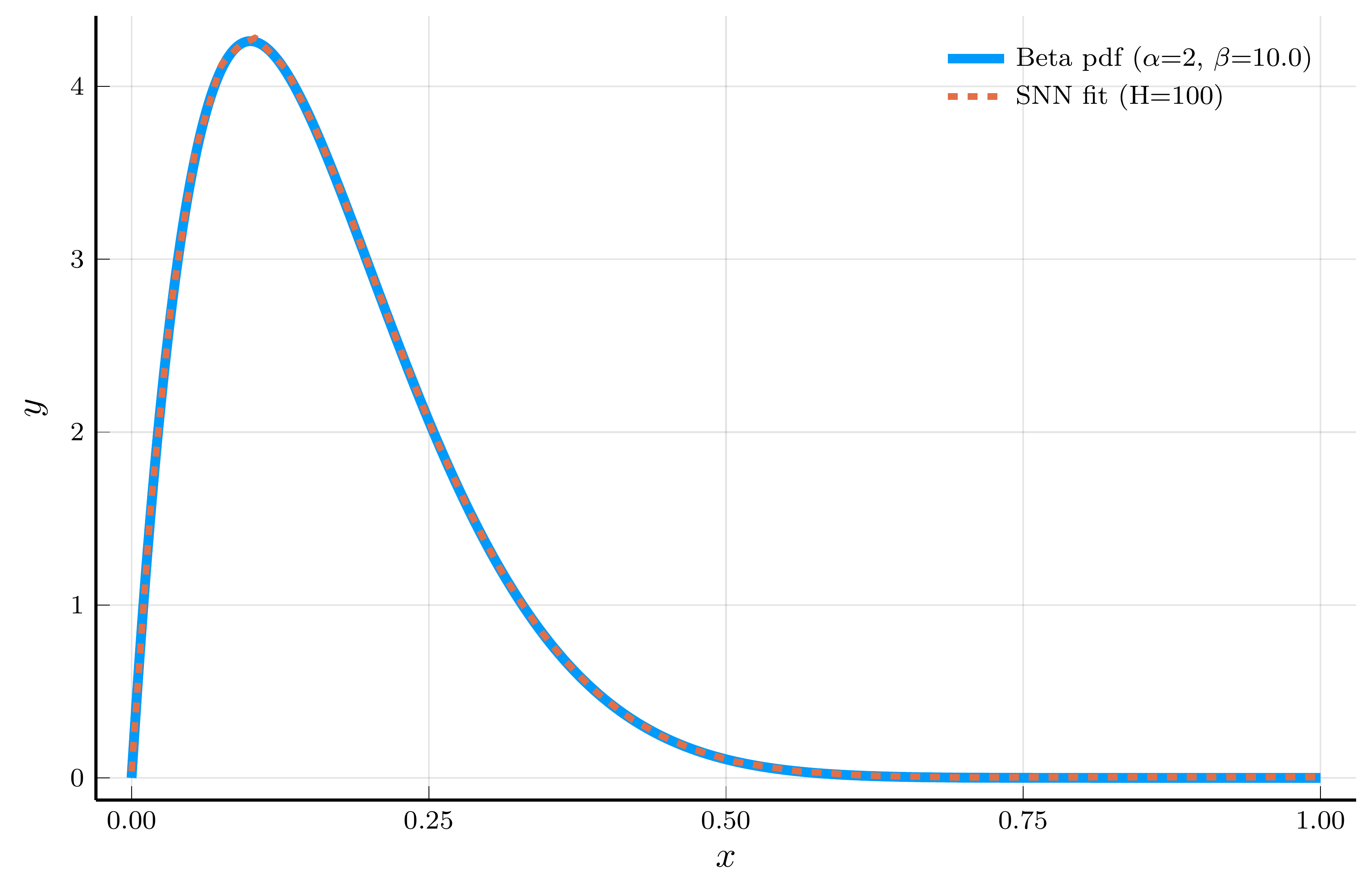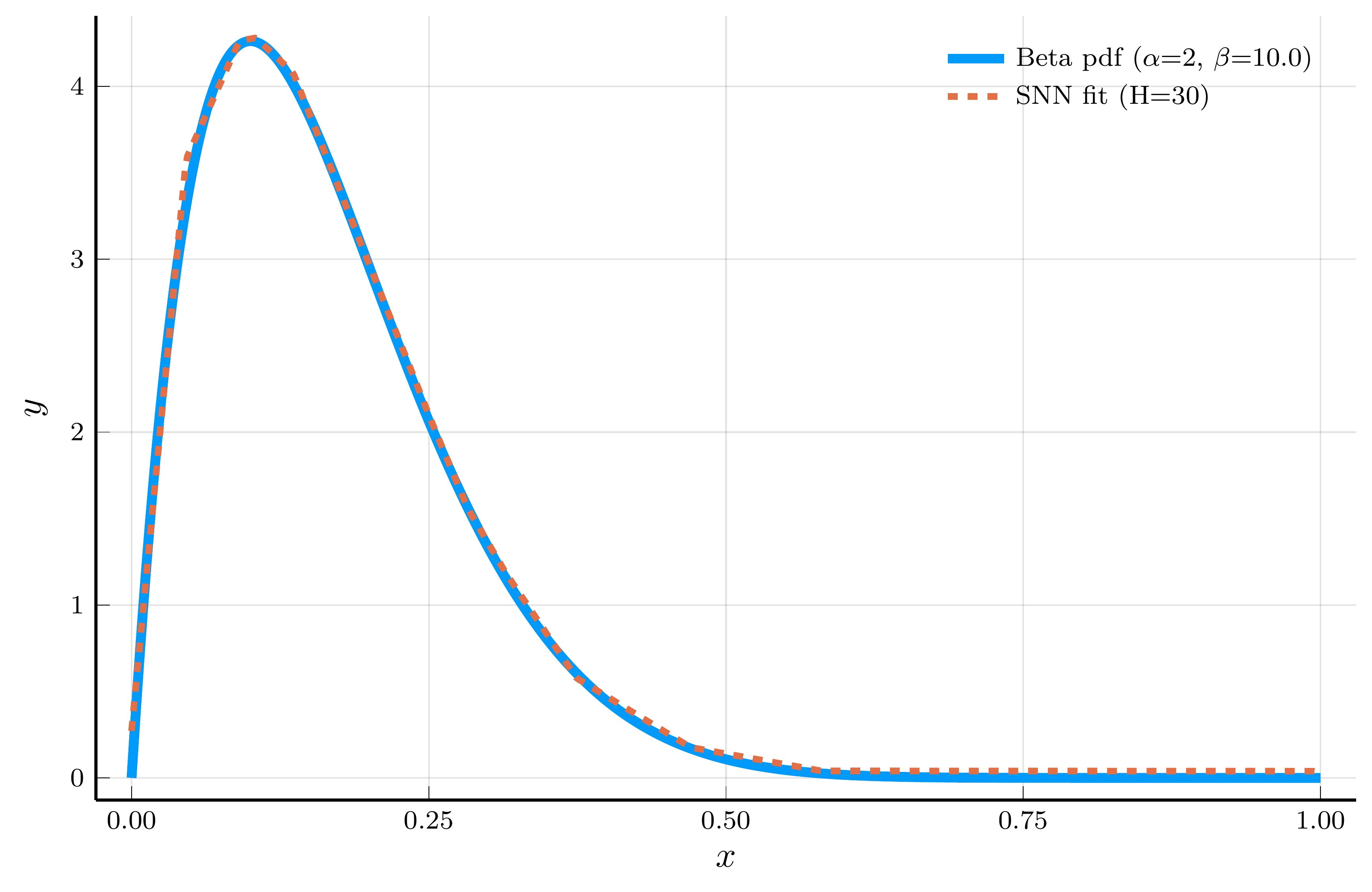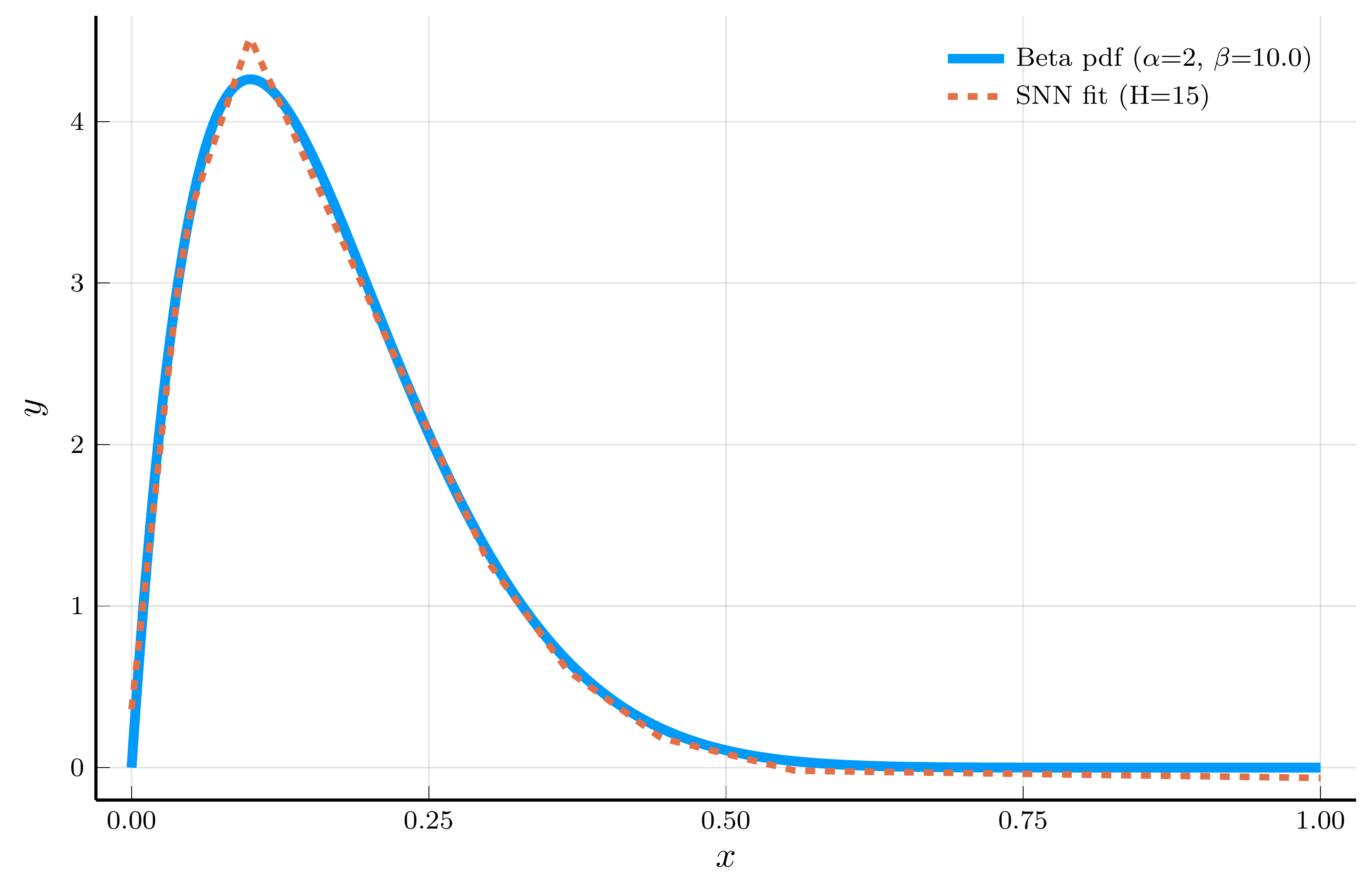 \[ SNN: f(x_i, \theta) = \sum_{j=0}^{n-1} w_{n,j} \max(0, x_i - \hat{x}_j) + b_n, \] where \(\hat{x}_j \equiv - b_j\) is a convenient reparametrization of the biases.